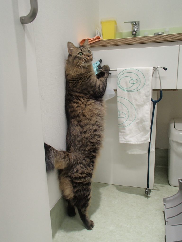 診察室でのフリータイムでは色々な物に興味津々!