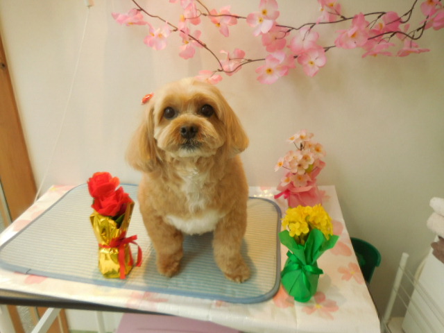 いつもおりこうさんのココアちゃん、トリミング後はずっと抱っこして~~と甘えてきてくれてかわいかったです。